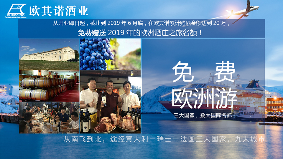 ▲從開業(yè),截止到2019年6月30日,在歐其諾累計購酒金額達(dá)到20萬,免費(fèi)贈送2019年的歐洲酒莊之旅名額!