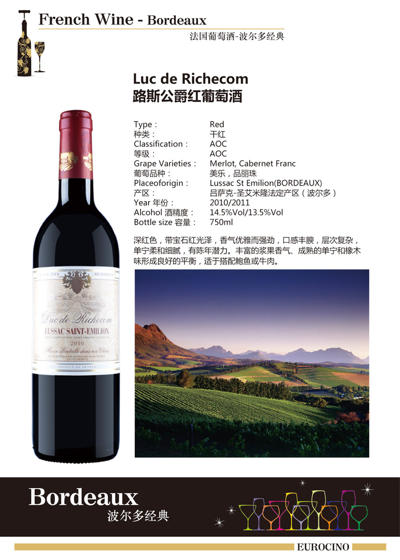 產(chǎn)區(qū):呂薩克-圣艾米利永(Lussac St Emilion) 等級:AOC