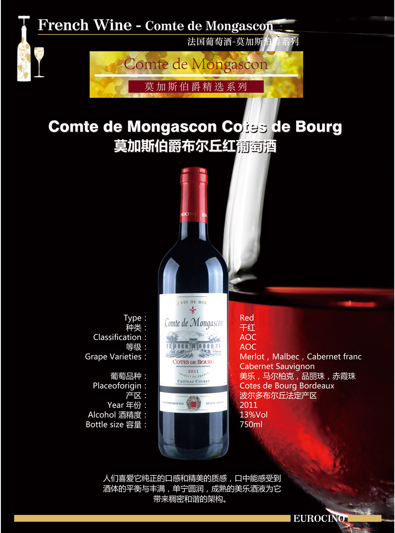 產(chǎn)區(qū):波爾多(BORDEAUX)布爾丘Cotes de Bourg      等級:AOC