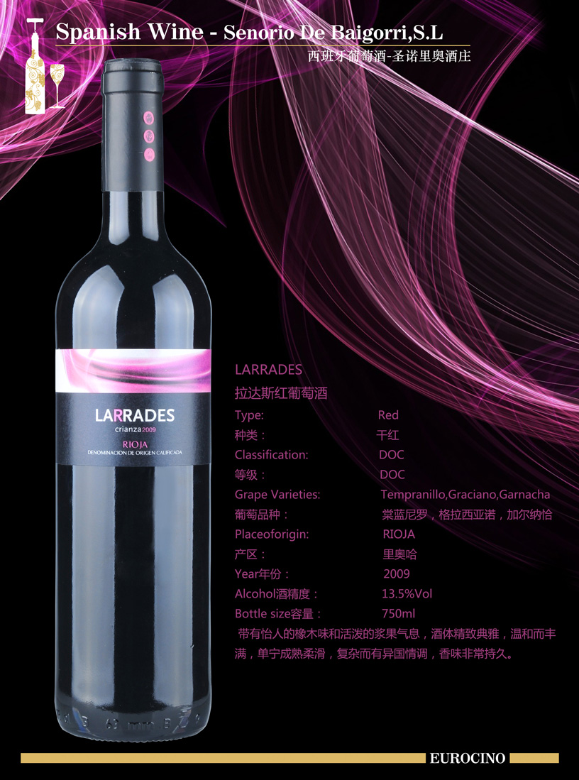 葡萄品種:70% Tempranillo 棠藍(lán)尼羅 20% graciano格拉西亞諾 10 garnacha. 加爾納恰