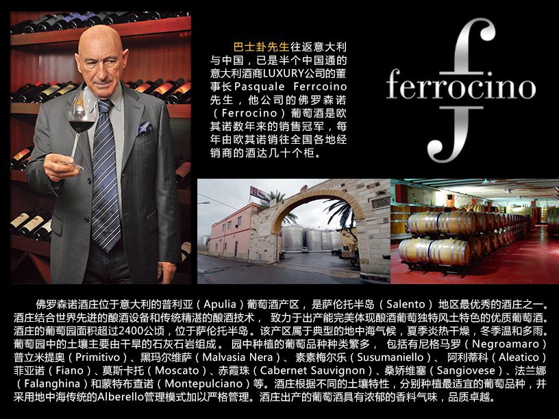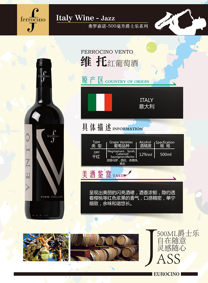 葡萄品種:尼格馬羅Negroamaro,西拉Syrah、赤霞珠Cabernet Sauvignon美樂Merlot