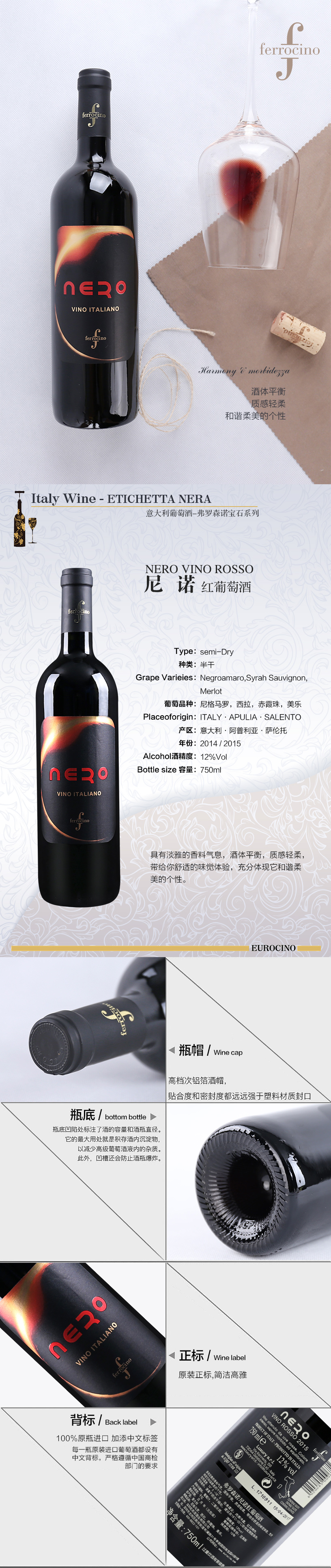 葡萄品種:尼格馬羅Negroamaro,西拉Syrah,赤霞珠 Cabernet Sauvignon,美樂Merlot