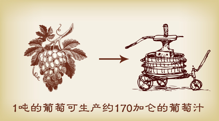1噸葡萄可生產(chǎn)約170加侖的葡萄汁