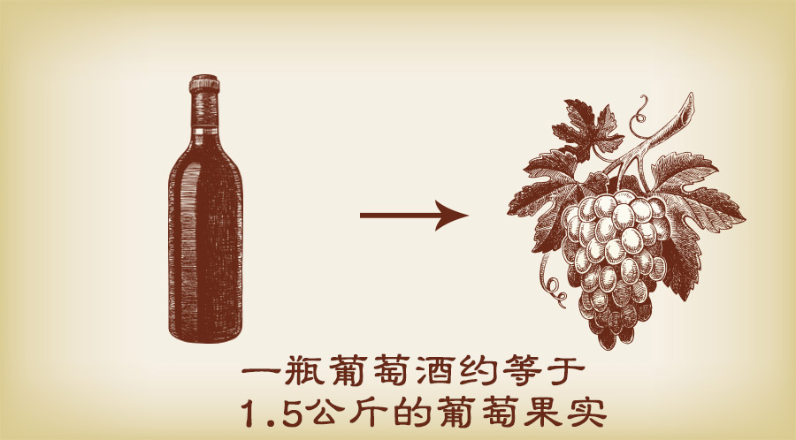 換言之,一瓶葡萄酒約等于1.5公斤的葡萄果實(shí)!