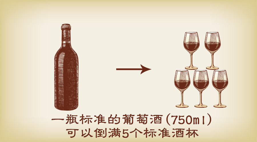 一瓶標(biāo)準(zhǔn)的葡萄酒是750ml,可以倒?jié)M5個標(biāo)準(zhǔn)酒杯